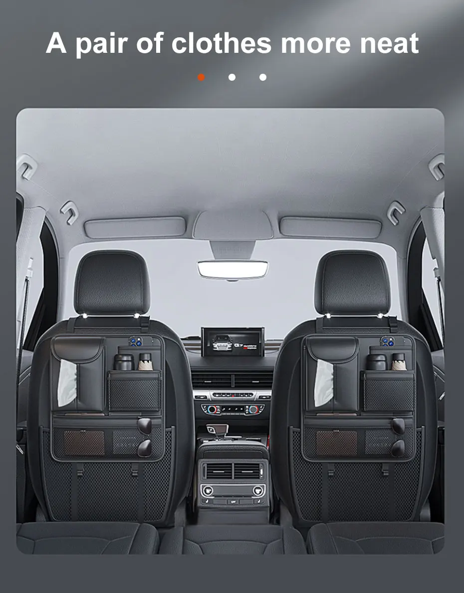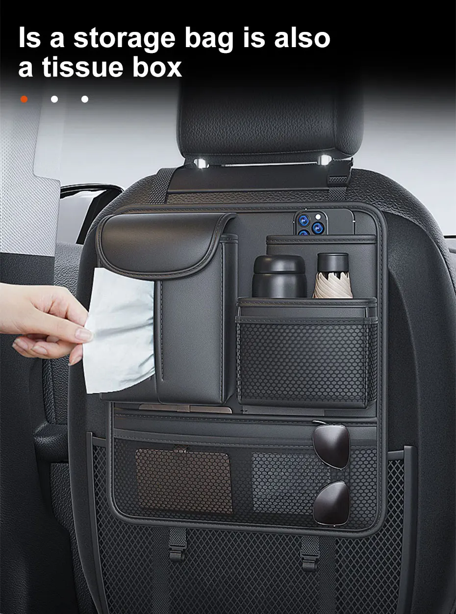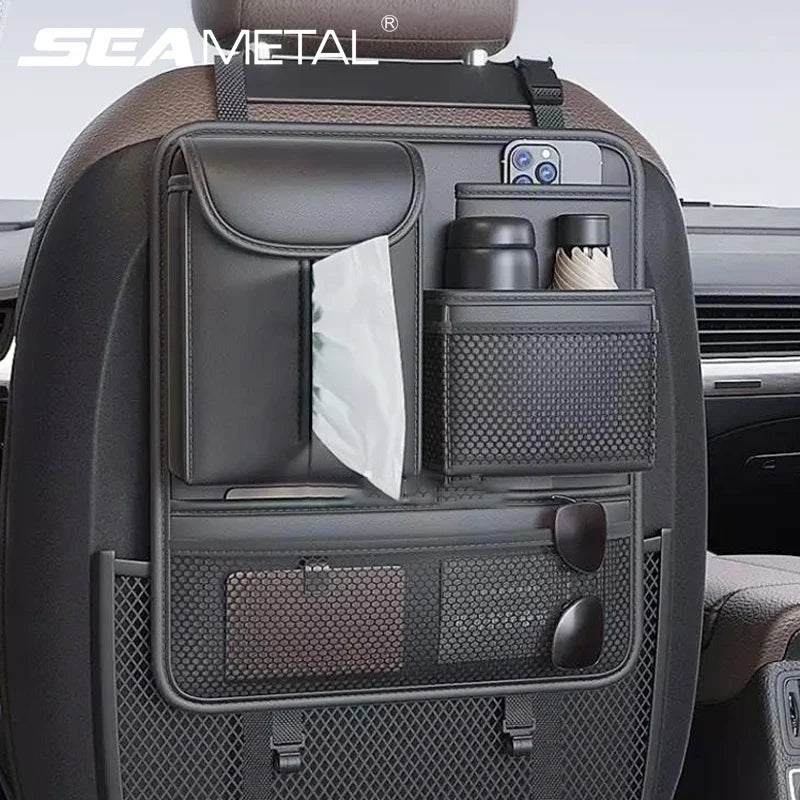 SEAMETAL Car Seat Back Organizer Rear Row Storage Bag with Elastic Band Nappa Leather Multi Pocket Anti Kick Pad Seat Protector