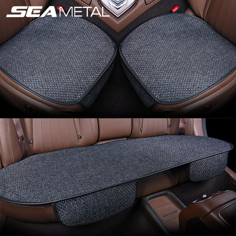 SEAMETAL Flax Car Seat Cover Front Rear Linen Fabric Seat Cushion Breathable Chair Protector Pad Mat Universal for Car Truck SUV