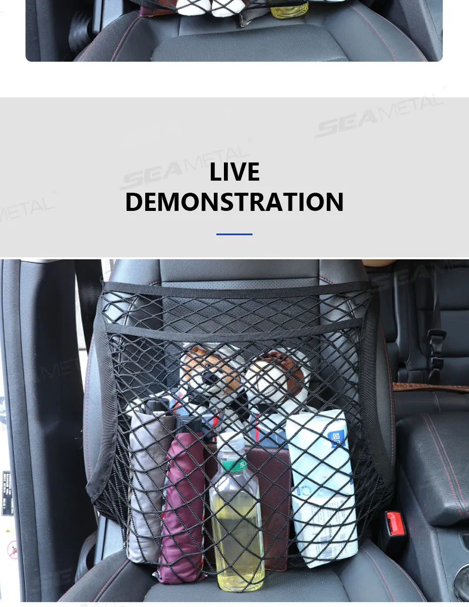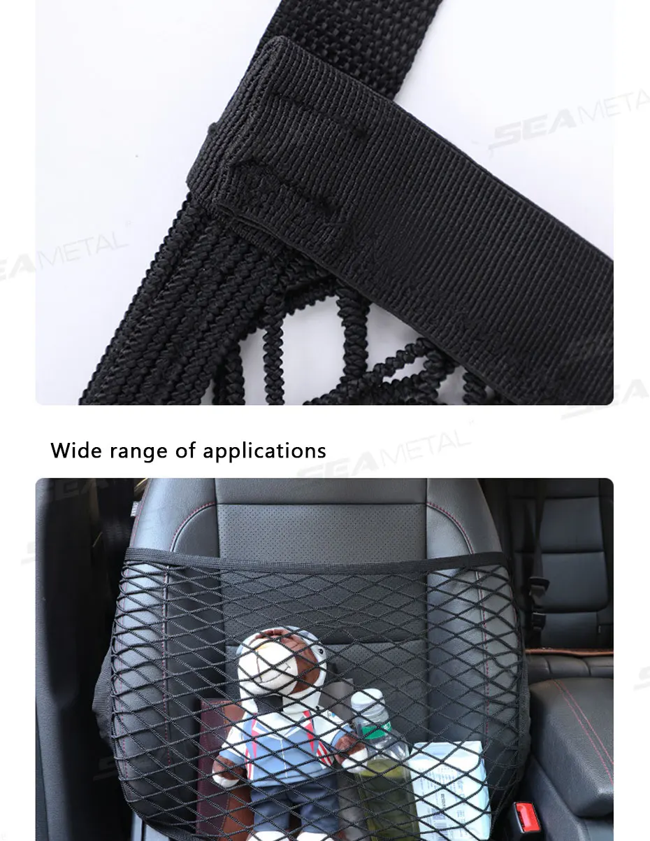 3. Compatibilidad: La red de asiento para coche se adapta a la mayoría de los vehículos, incluidos camiones, SUV, coches. El organizador de asiento de coche de malla se puede instalar en el asiento del pasajero, el asiento trasero o en cualquier otro lugar para proporcionar una organización eficaz del coche.