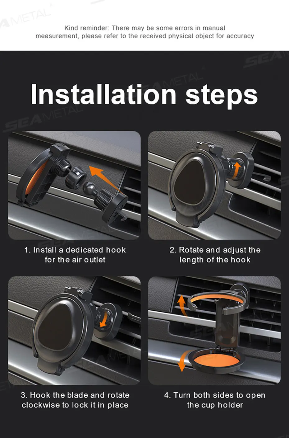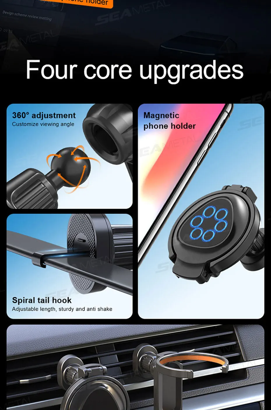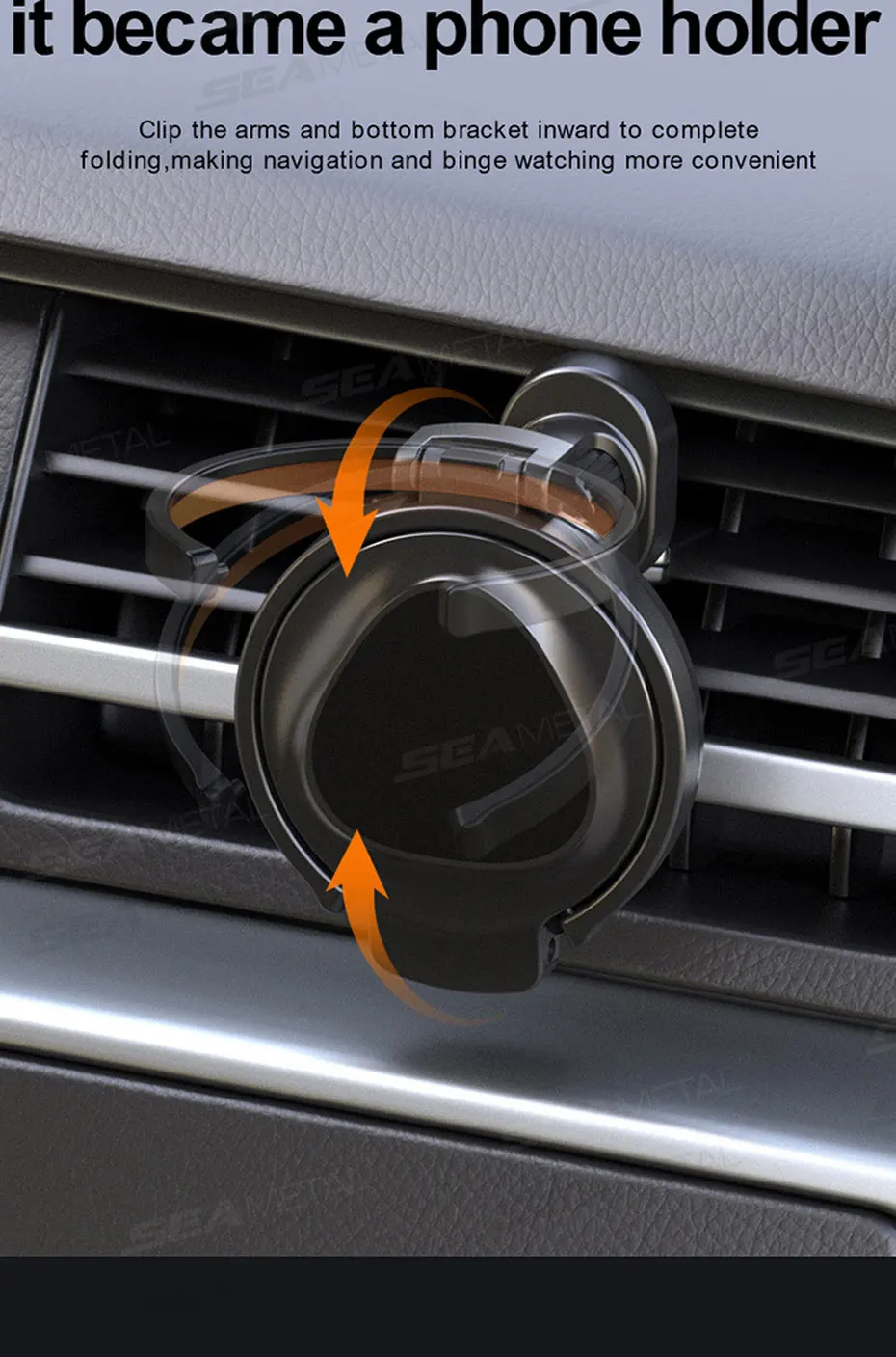 Soporte de teléfono para coche SEAMETAL 2 en 1 con portavasos plegable, rotación de 360 grados, soporte magnético para teléfono en la ventilación, soporte estable para bebidas