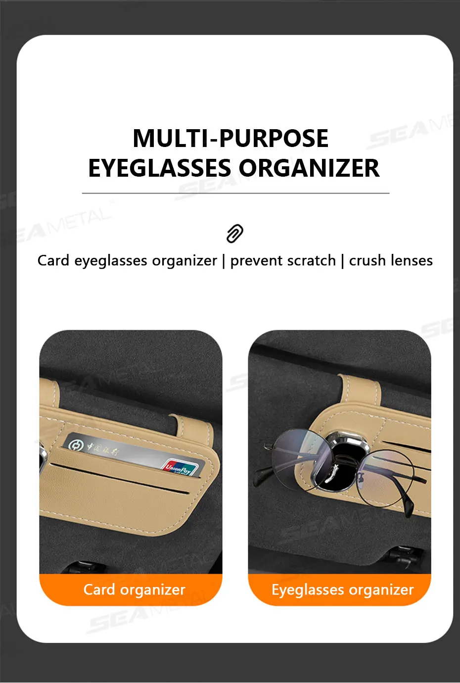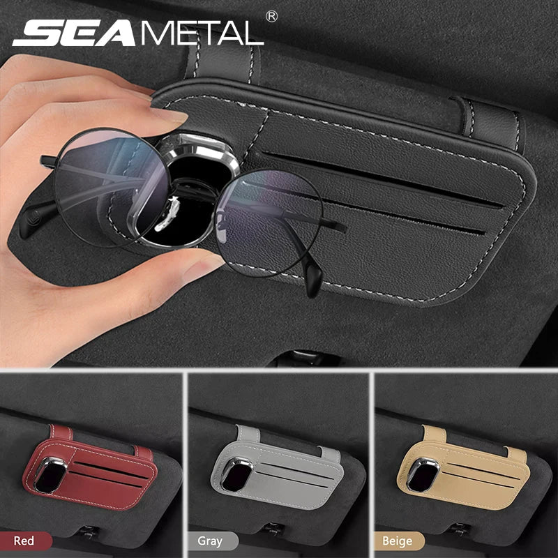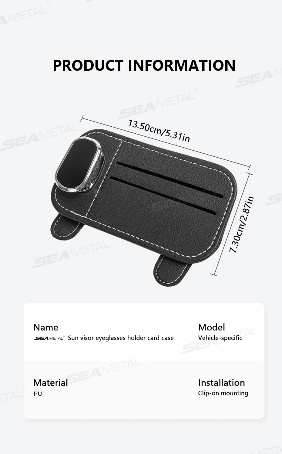 Clip para gafas SEAMETAL para parasol de coche, cuero PU, soporte para gafas de sol sin arañazos con bolsa de almacenamiento para tarjetas, soporte universal para gafas