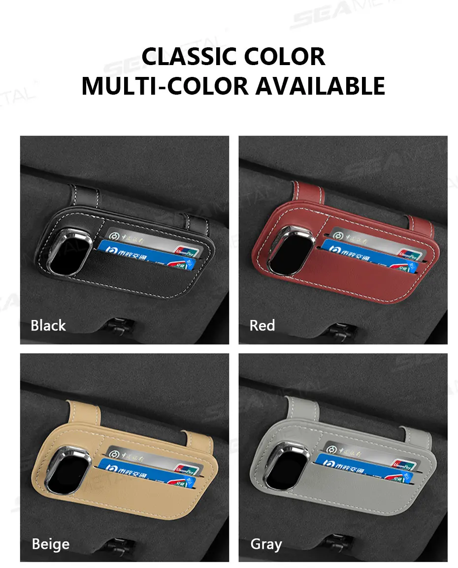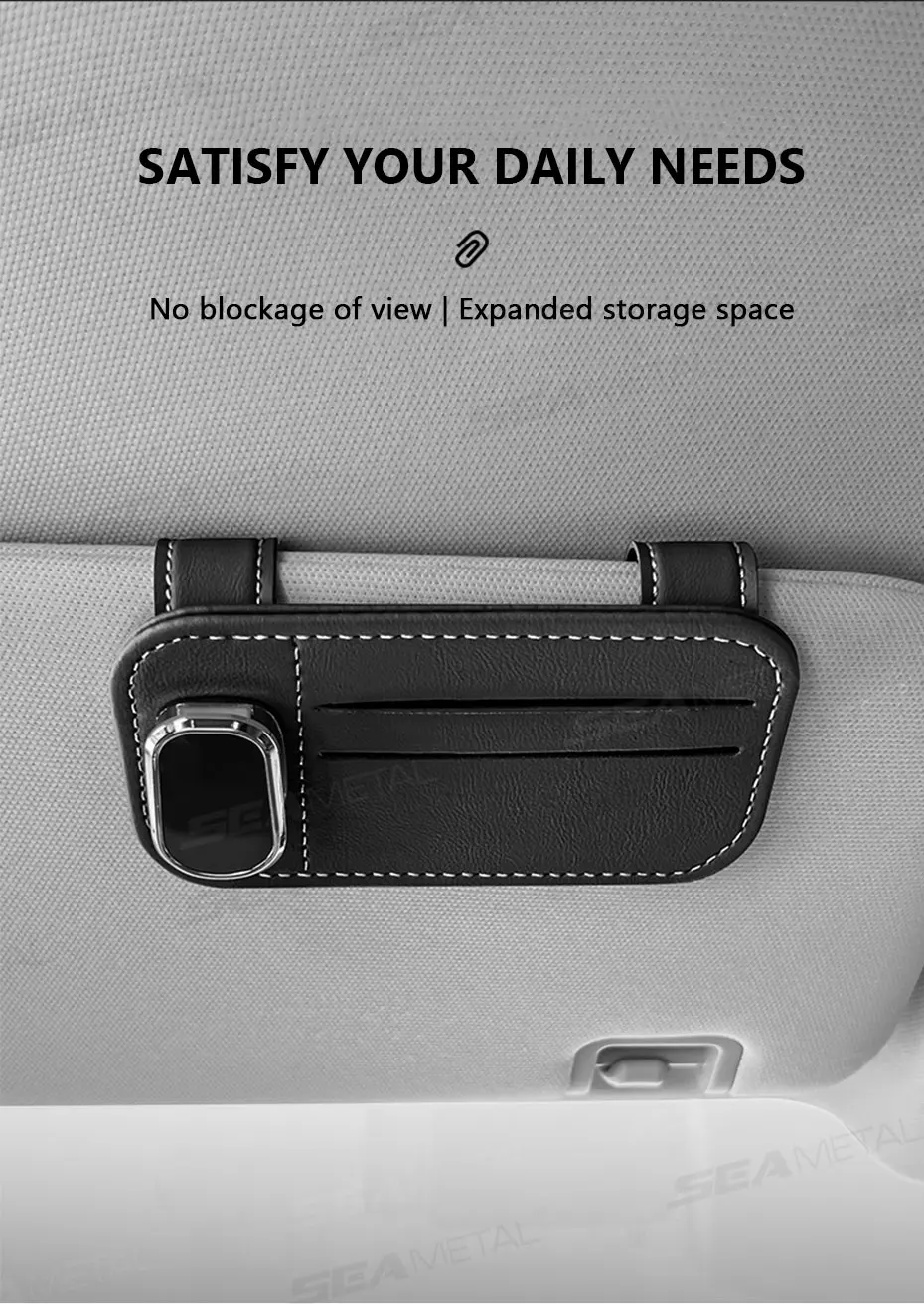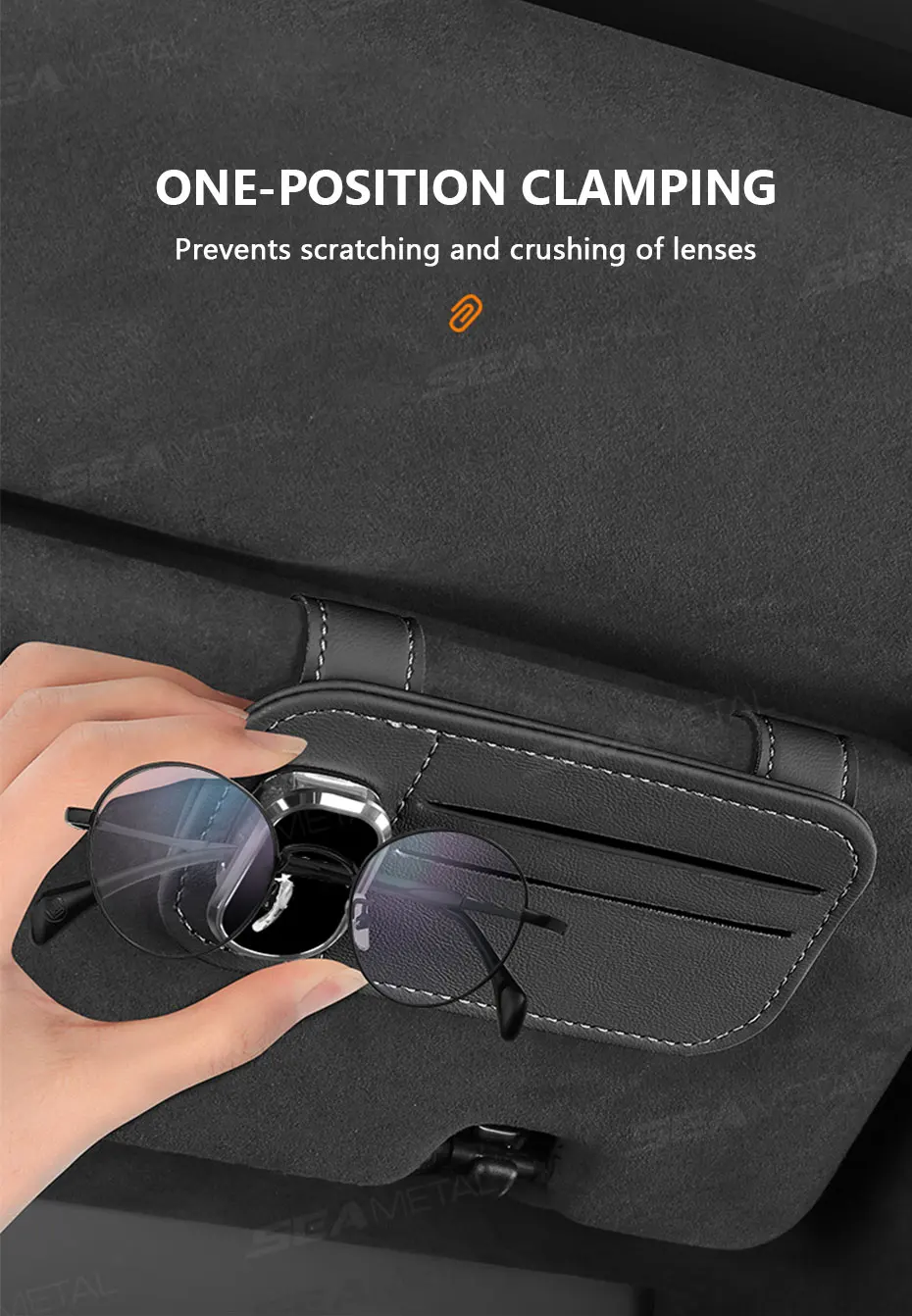 Clip para gafas SEAMETAL para parasol de coche, cuero PU, soporte para gafas de sol sin arañazos con bolsa de almacenamiento para tarjetas, soporte universal para gafas