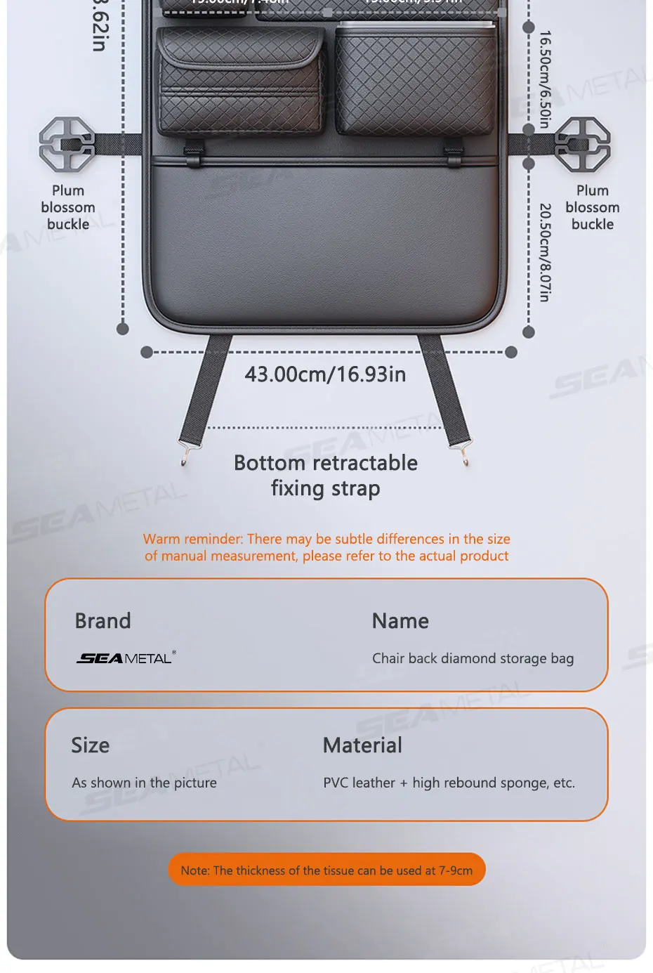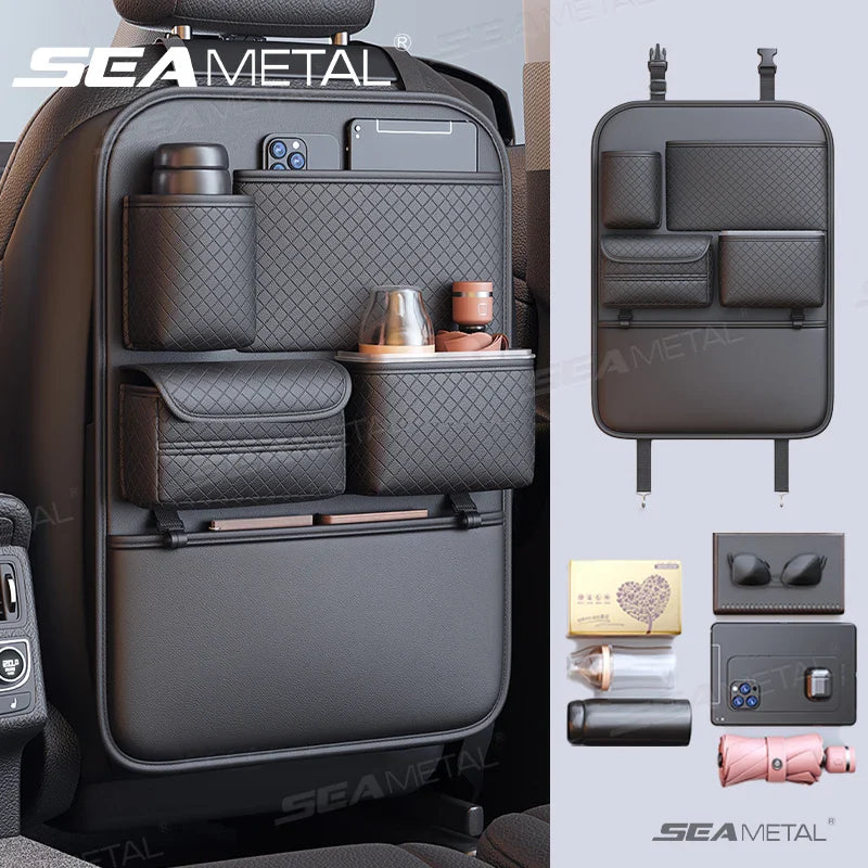 SEAMETAL Bolsa de almacenamiento de lujo para el respaldo del asiento del coche, organizador multifunción para el asiento trasero, bolsillo de almacenamiento resistente al desgaste, protector anti-patadas para el asiento