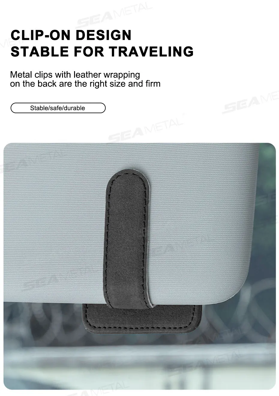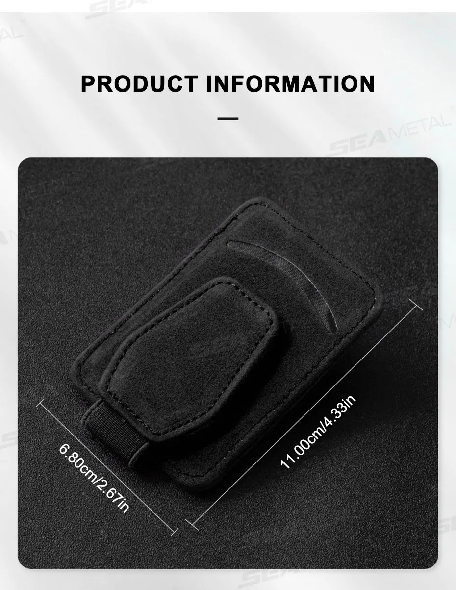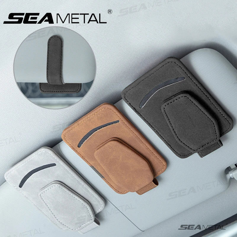 Soporte de gafas de coche de lujo SEAMETAL de ante con imán fuerte para parasol, mini clip para gafas de sol con bolsillo para tarjetas