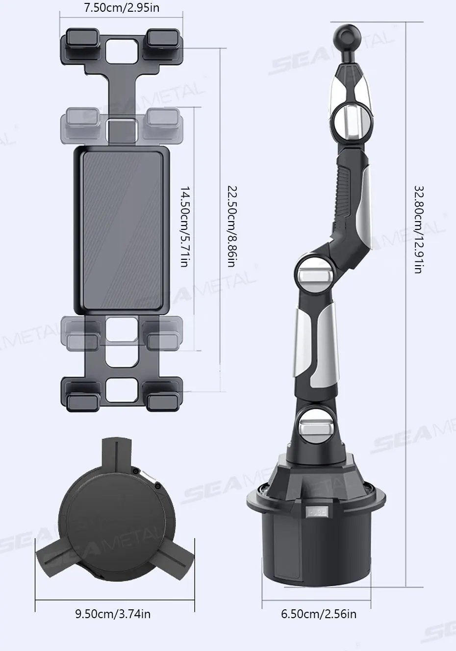 SEAMETAL Car Phone Mount on Cup Holder 6.5-9.5CM Adjustable Base Tablet/Phone Holder 360-Degree Flexible Rotation Phone Stand