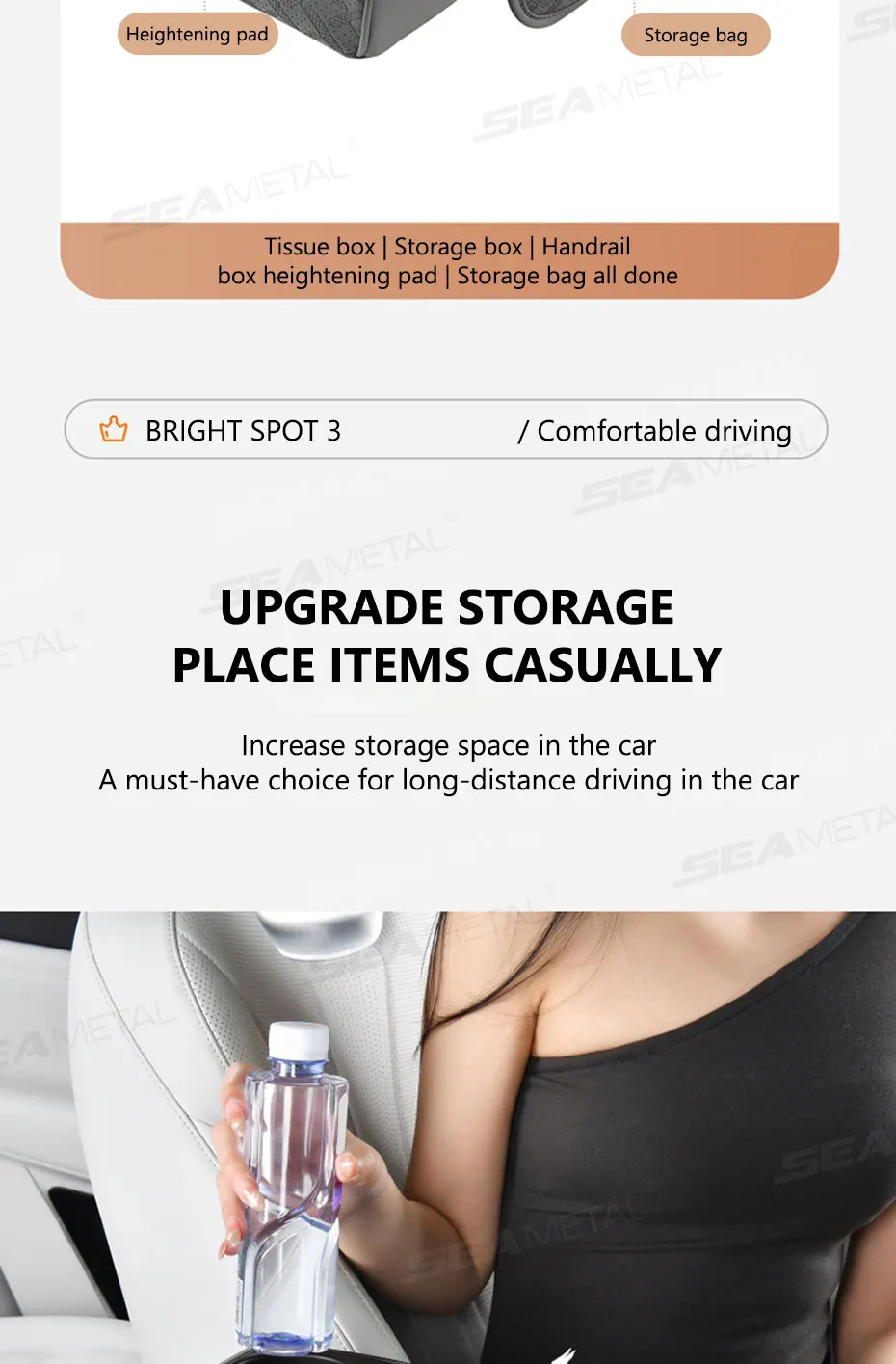 1. Multifunctional Design Storage: This armrest pad comes with a multifunctional storage solution, with a dedicated paper drawer, drink holder and a safe place to store your phone. Paper drawer are perfect for storing important documents or maps, while drink holder provide easy access to drinks.