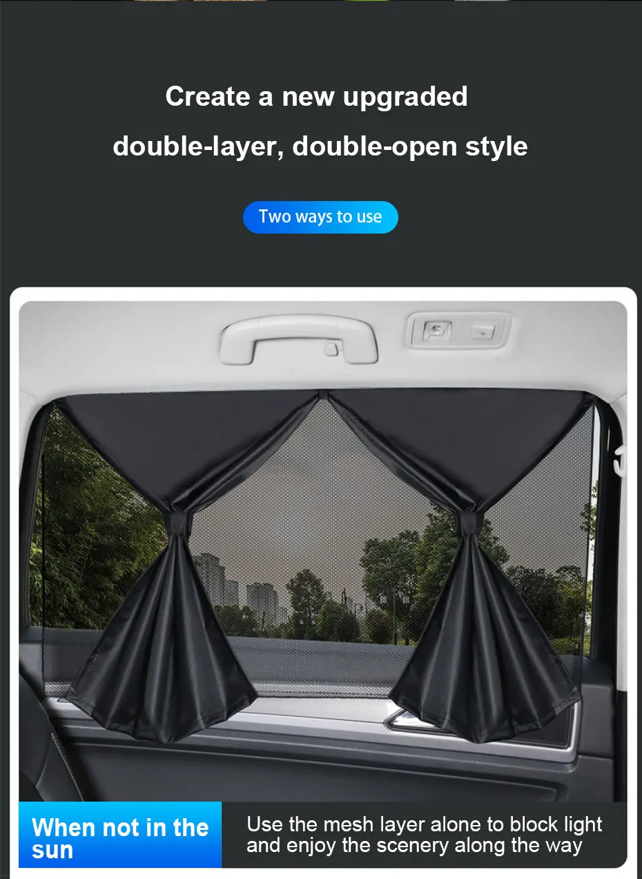 SEAMETAL 2Pcs Car Curtains Magnet Double Layer Side Window Sun Shade Privacy Curtain UV Block Sun Protection Cover for Children