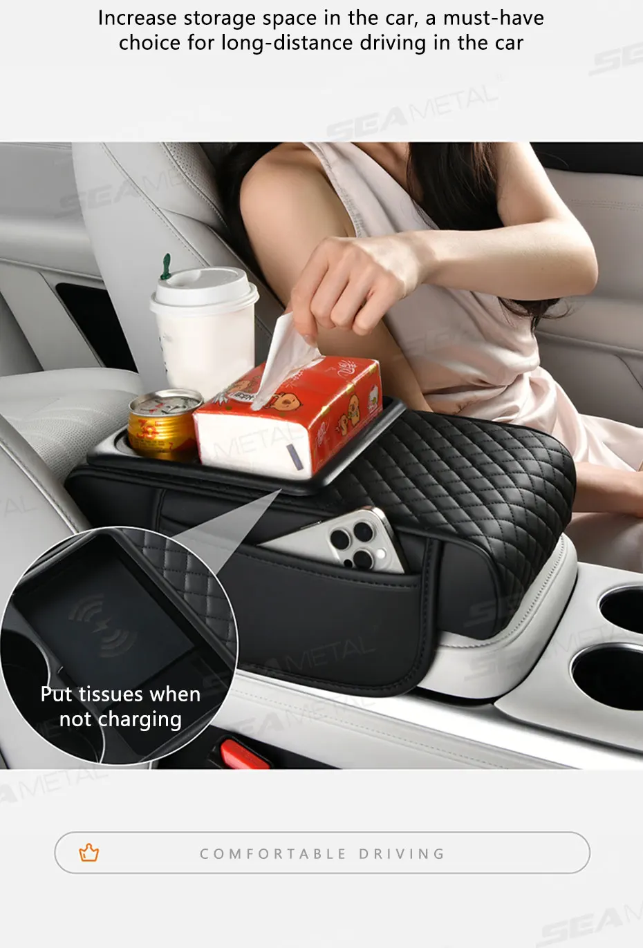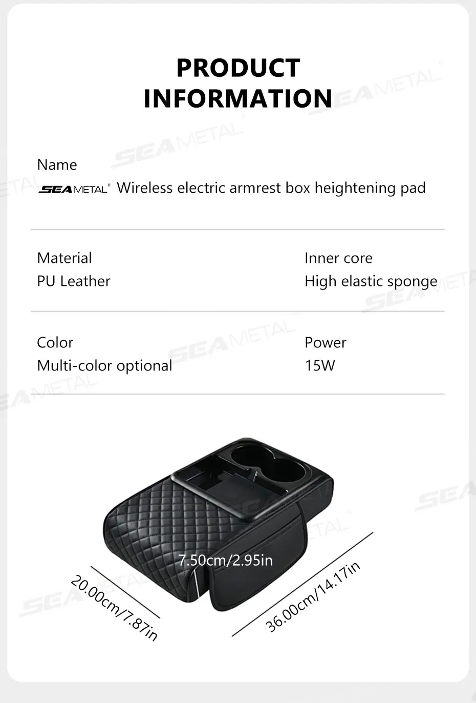 SEAMETAL 15W Wireless Charging Arm Rest Cushion for Car 7.5cm Thicken Center Console Extension Cushion Universal Elbow Support