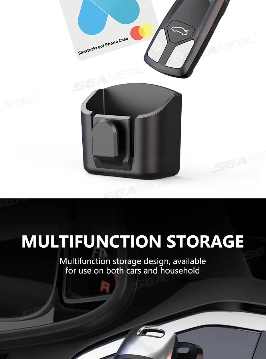 SEAMETAL Dashboard Autosleutel Opbergdoos Compacte Sleutel Organizer Zelfklevende Universele Autosleutelhouder met Ophanghaak