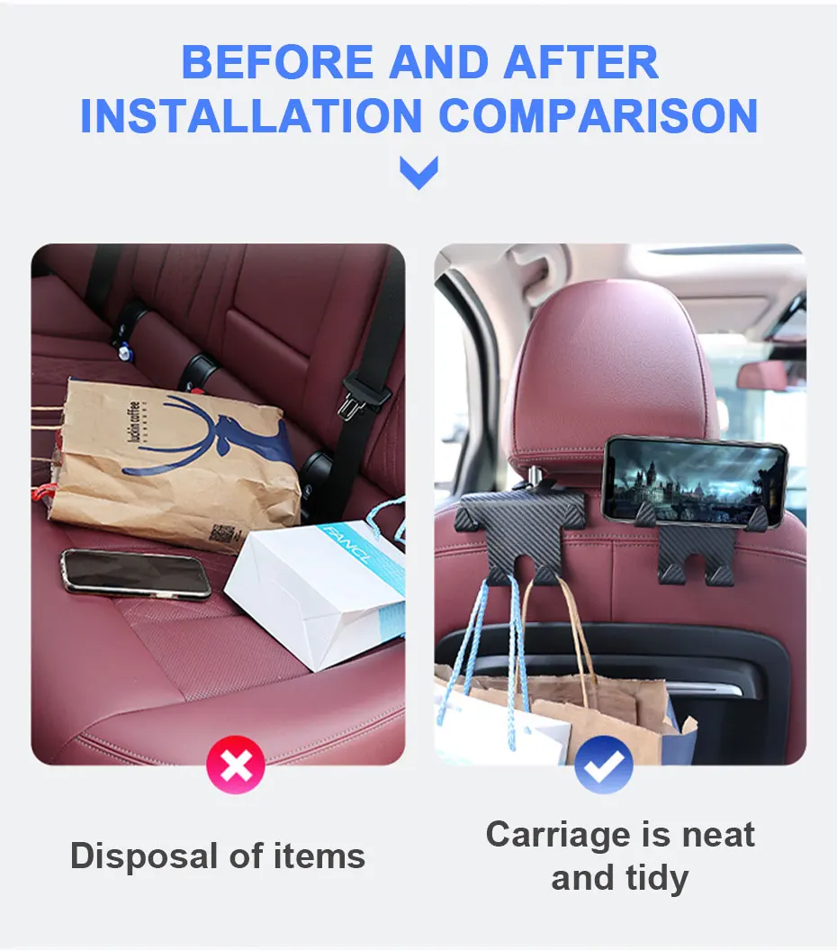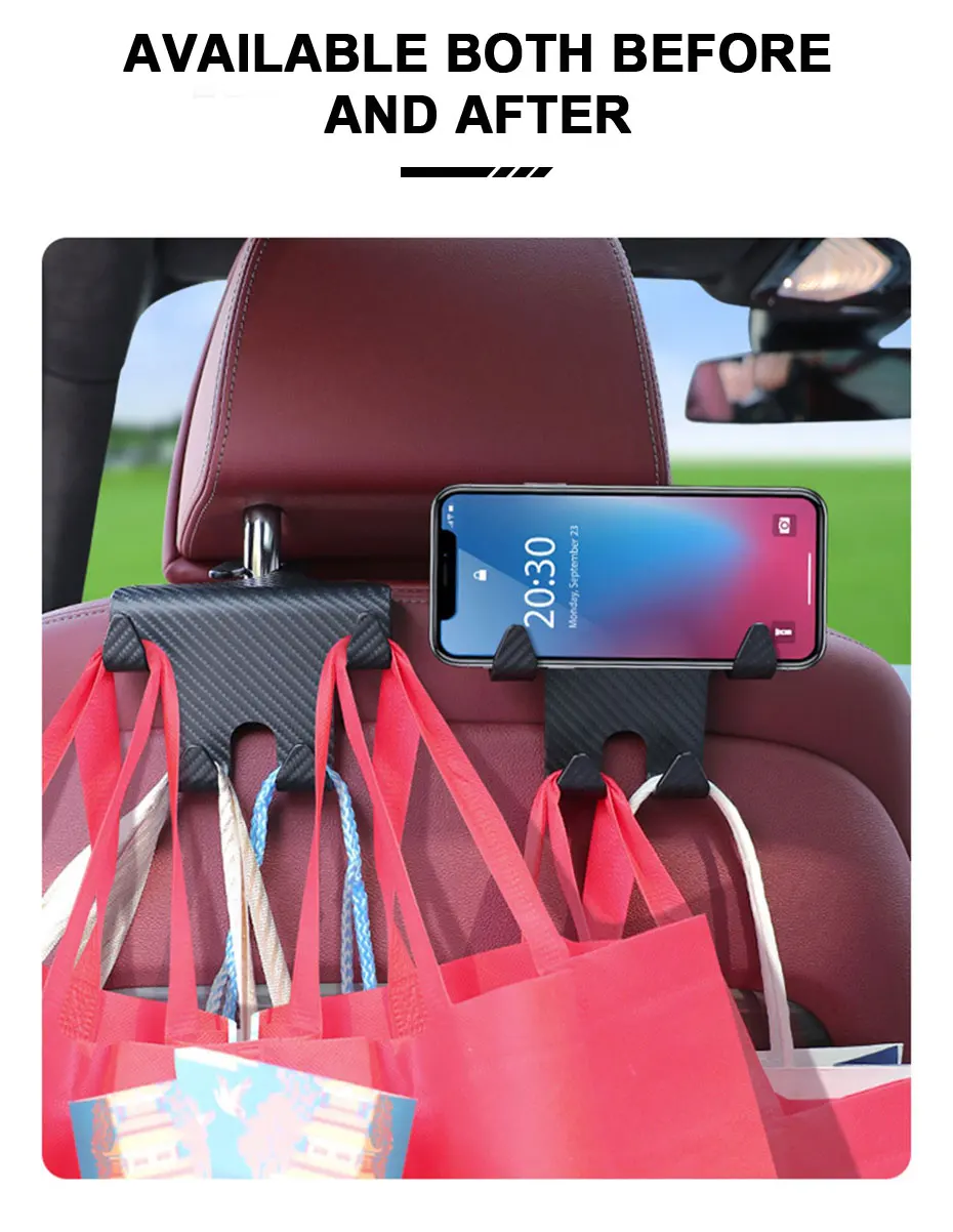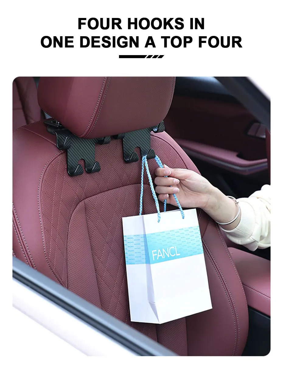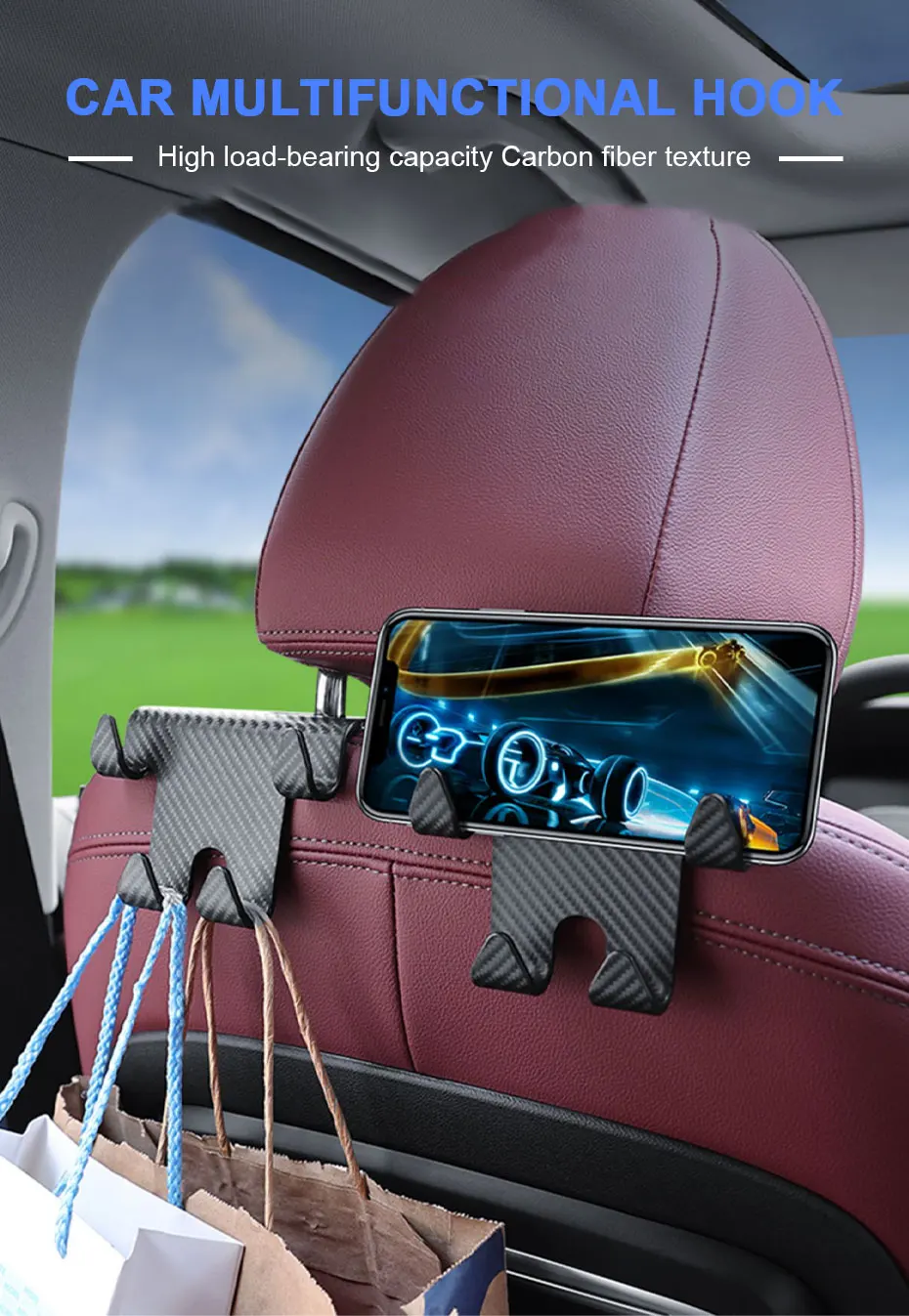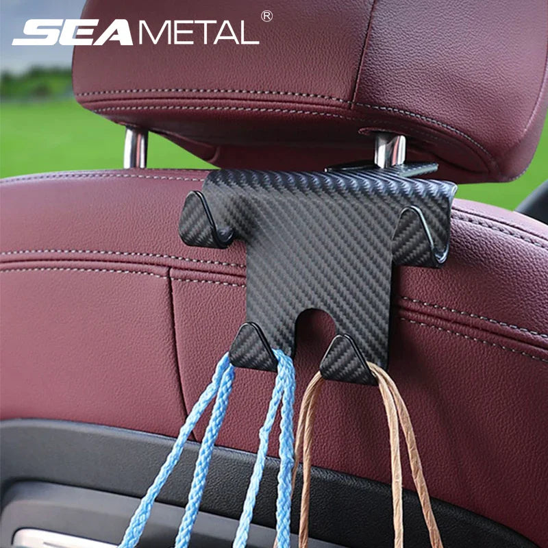 SEAMETAL Multifunctionele Autohaak Hoofdsteun Rugleuning Hanghaak Koolstofvezel Decoratie Grote Draagkrachtige Kleerhanger voor Achterbank