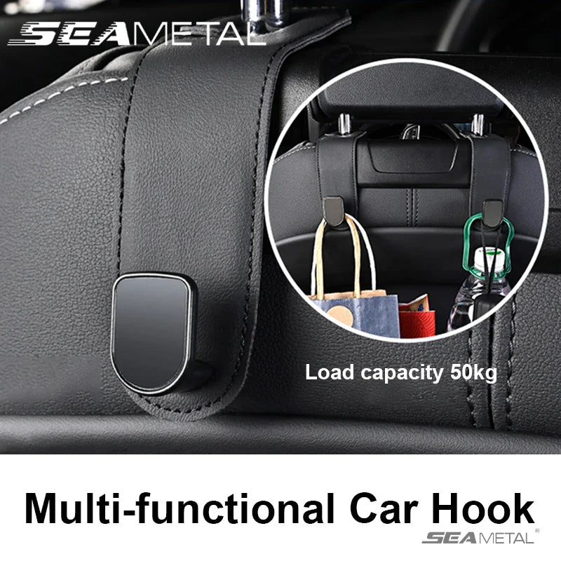 SEAMETAL Hidden Car Back Seat Hook Headrest Suede Leather Soft Hanging Hook 20kg Load-Bearing Wear-Resistant Rear Row Hanger